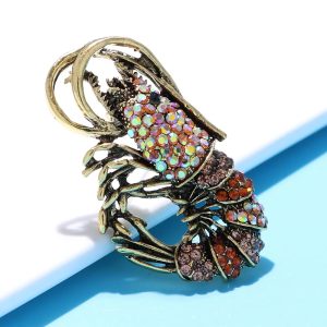 Blue/Coral AB Rhinestone Shrimp Brooch