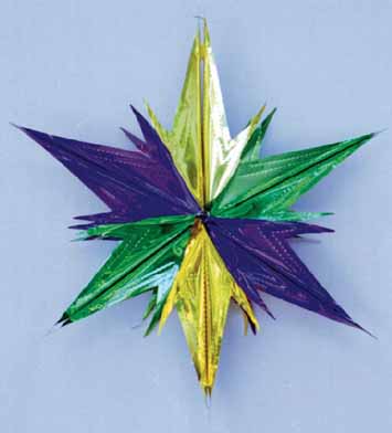 Mardi Gras 20″ PGG foil pull apart star with hanger metallic decoration. PB/HC