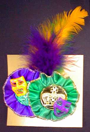 Pleated ribbon decorated doubllons wtih Comedy Tragedy face parts and feathers. Hand crafted by us.