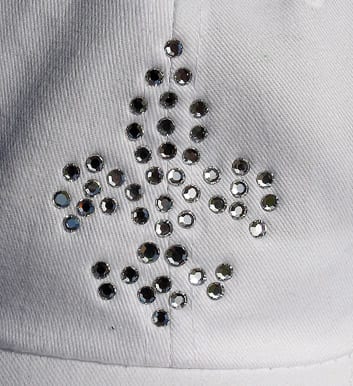 These caps have hand applied Czech Preciosa high quality lead crystal rhinestones in a Fleur de Lis motif. These stones have 8 facets for maximum light reflection. You may order this hat as white only or in combination.