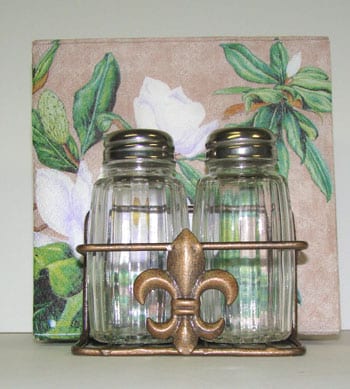 12 in a case @ $5.50 each Fleur De Lis salt and pepper shaker with napkin holder. A great kitchen decor! Will hold any standard napkins!