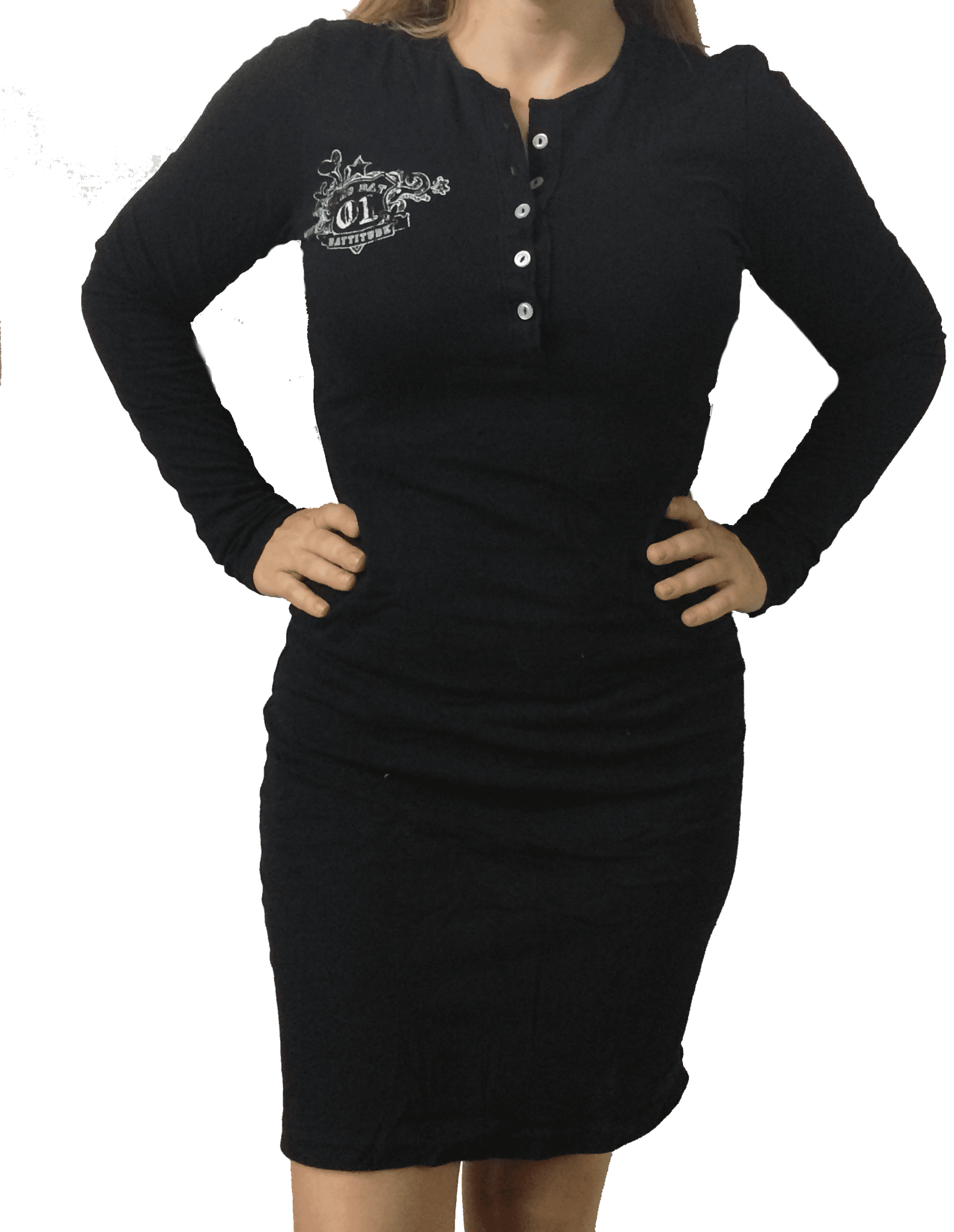 Long Sleeve Henley Dress This versatile dress can be layered or worn on its own. 100% Sheer Jersey cotton construction Medium is approximately 36 1/2″ (92.7cm) in total length 5-button placket Form-fitting Fabric weight 3.8 oz/ydå_ (129 g/må_) Pre-shrunk and laundered, our 100% cotton Sheer Jersey is combed for softness and comfort. Comprised of loosely knit 40-singles yarn, this fabric has both a subtle stretch and delicate texture. Screen printed front and back