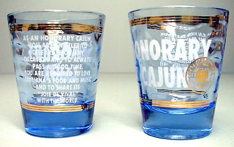 Honorary Cajun shot. Coordinates with aprons, tees, certificates, etc. As an Honorary Cajun you are entitled to celebrate on any occasion and to always pass a good time. You are required to love Louisiana’s food and music and to share its “joie de vivre” with the world.