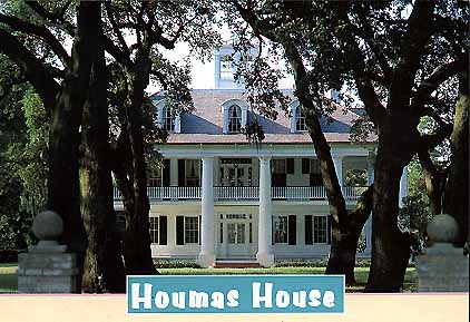 Houmas House horizontal pack of 50. Back reads–Historic Houmas House. River Road, Burnside, Louisiana. This magnificient Greek revival plantation was built by Colonel John Smith Preston, on land originally inhabited by the Houmas Indians. Mrs. Preston was the daughter of Genenral Wade Hampton. Dr. and Mrs. Crozat acquired the property in 1940, and have restored it to its original splendor.