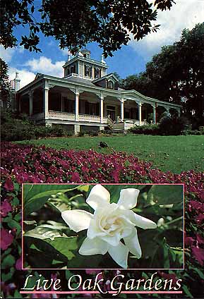 Live Oak Gardens postcard vertical multi pack of 50. Regular price $6.25, now $4.00–Collector’s item. Back reads, Live Oak Gardens, Jefferson Island, Louisiana. A cultural oasis in the heart of Acadiana, a special place of peace and beauty. Located on Jefferson Islands, it feautures 20 acres of landscaped gardens and the historic Joseph Jefferson house.