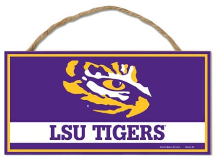 *LSU Tigers Wood Sign w/Rope 5″ x 10″