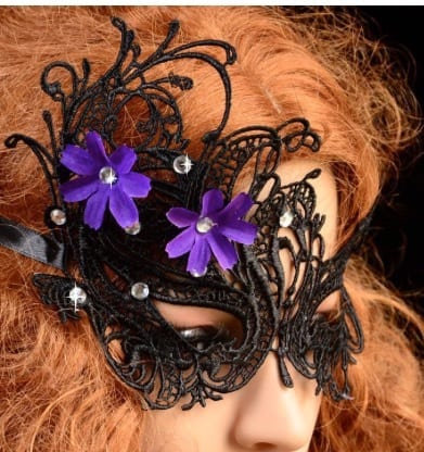 / Black lace purple flower mask