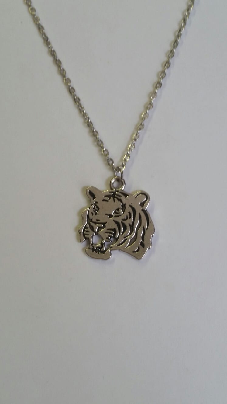 / LSU Silver tiger face necklace