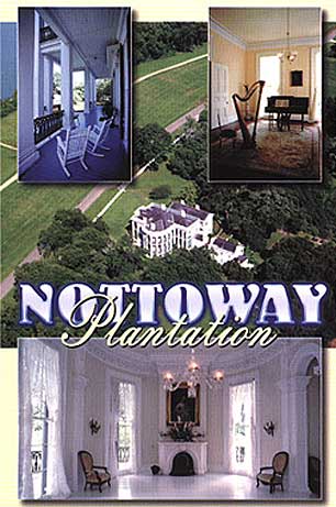Nottoway multi vertical card, pack of 50. Back reads–Nottoway Plantation, circa 1859, is the largest Plantation Home in the South and contains 64 rooms, 200 windows, and over 53,000 square feet under the original roof. The most famous room, the Ballroom, is located at the west side of the house, inside the curved wing. Nottoway is located on the Mississippi River in White Castle.