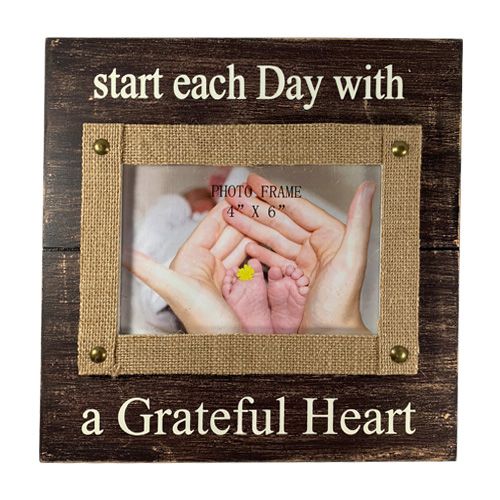 / “Start each day with a grateful Heart” wood & burlap 9×9 frame